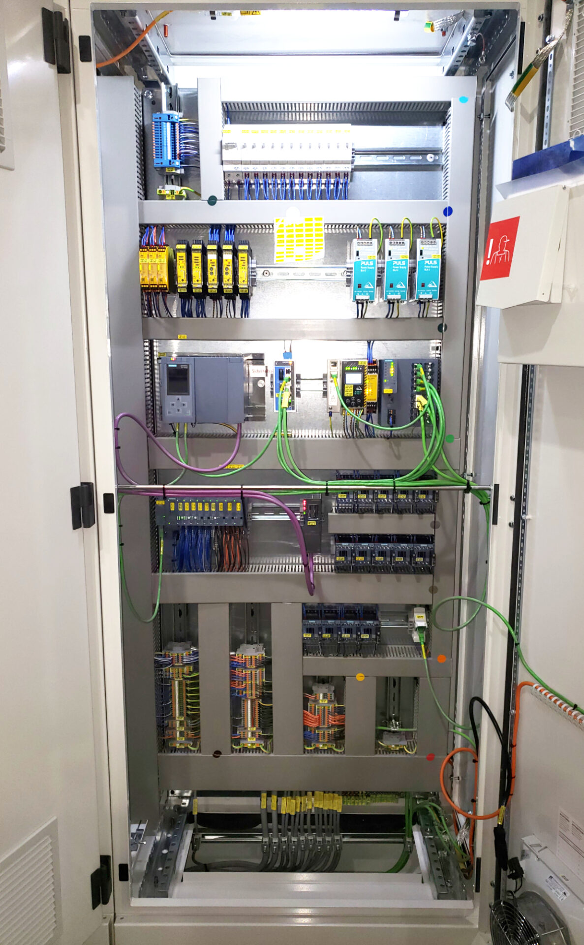 - Montaż szaf sterowniczych – pulpity lokalne i sterownicze umiejscowione przy urządzeniach technologicznych,