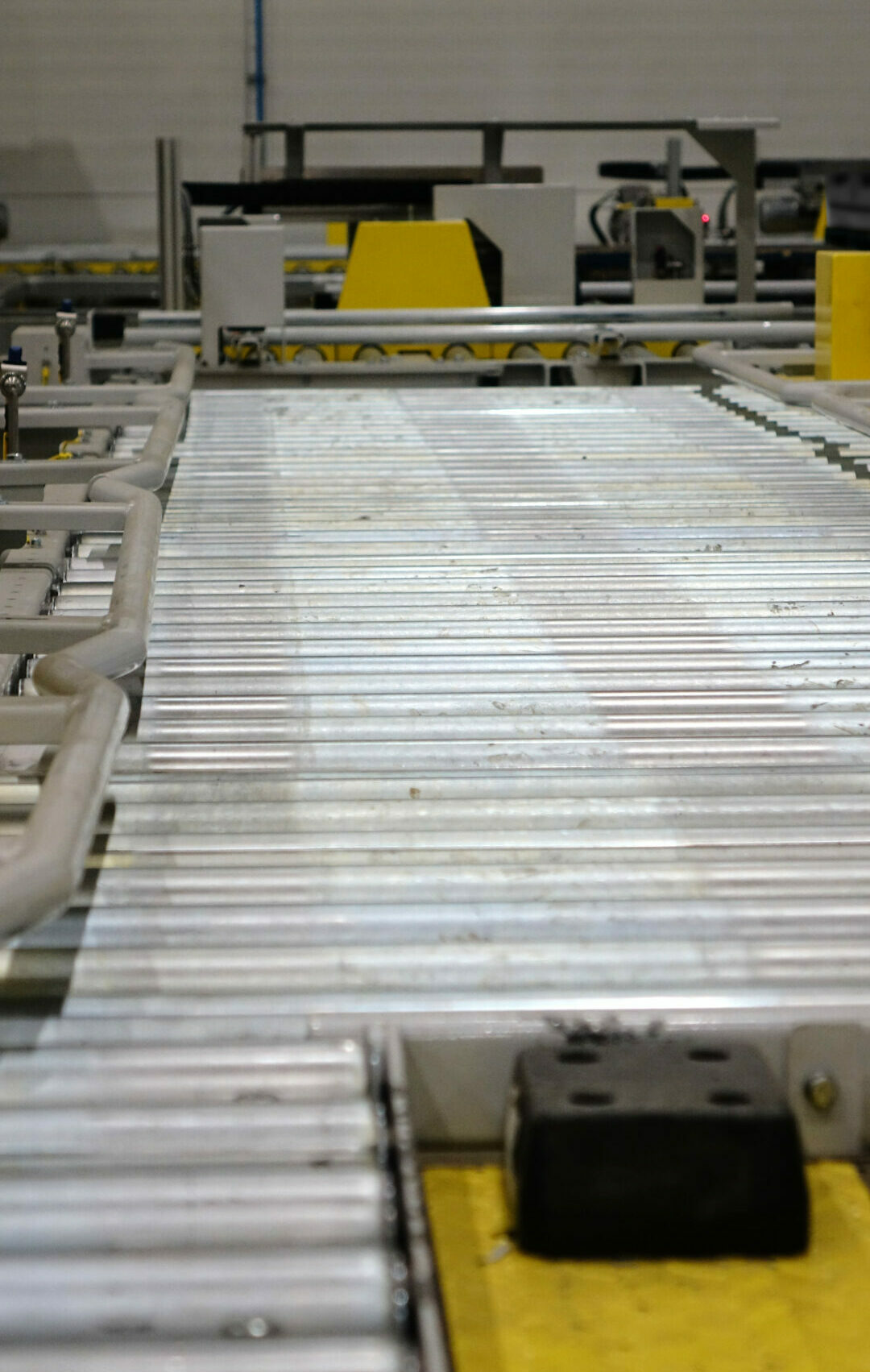 System przenośników i obrotnic rolkowych na wysokości 100mm od posadzki (przystosowanych do transportu do 1,2 tony) pozwala na szybkie i sprawne zapełnienie linii produktem wejściowym.